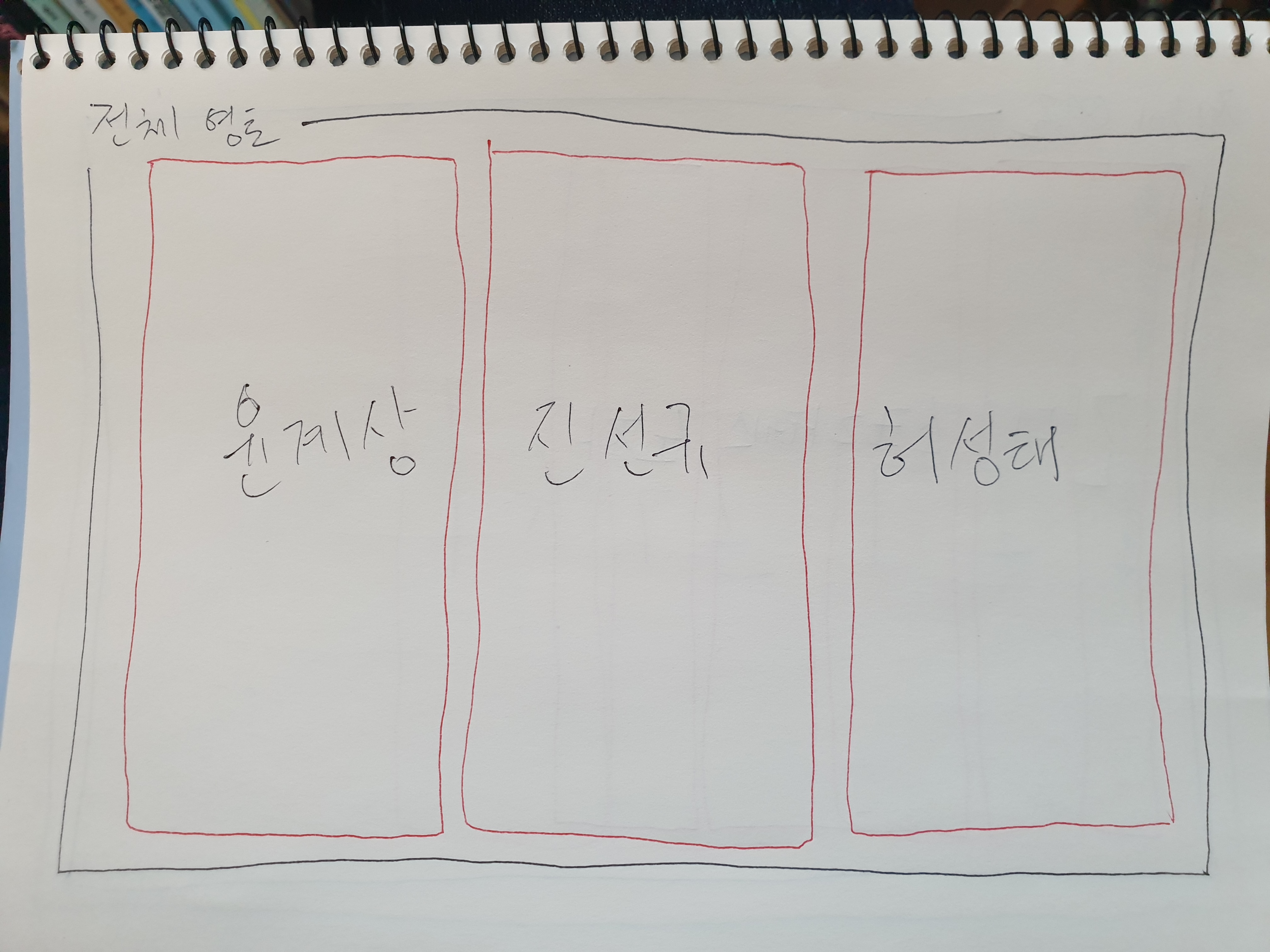 평범한 사람들이니까 전투력이 전부 1로 동일하다고 가정하자..윤계상 { flex-grow: 1; } .진선규 { flex-grow: 1; } .허성태 { flex-grow: 1; }그럼 아마 이렇게 차지하고 살겠지?