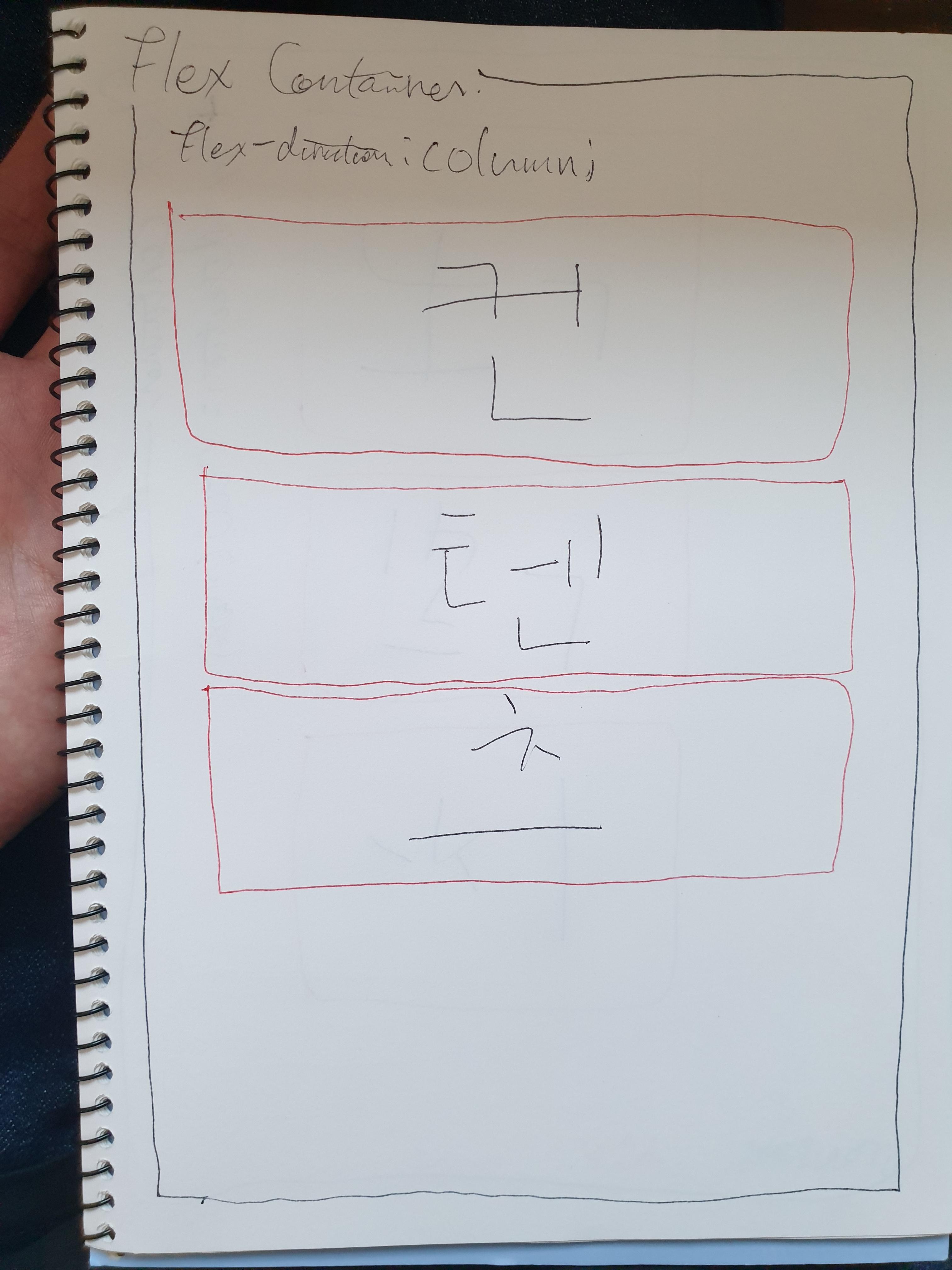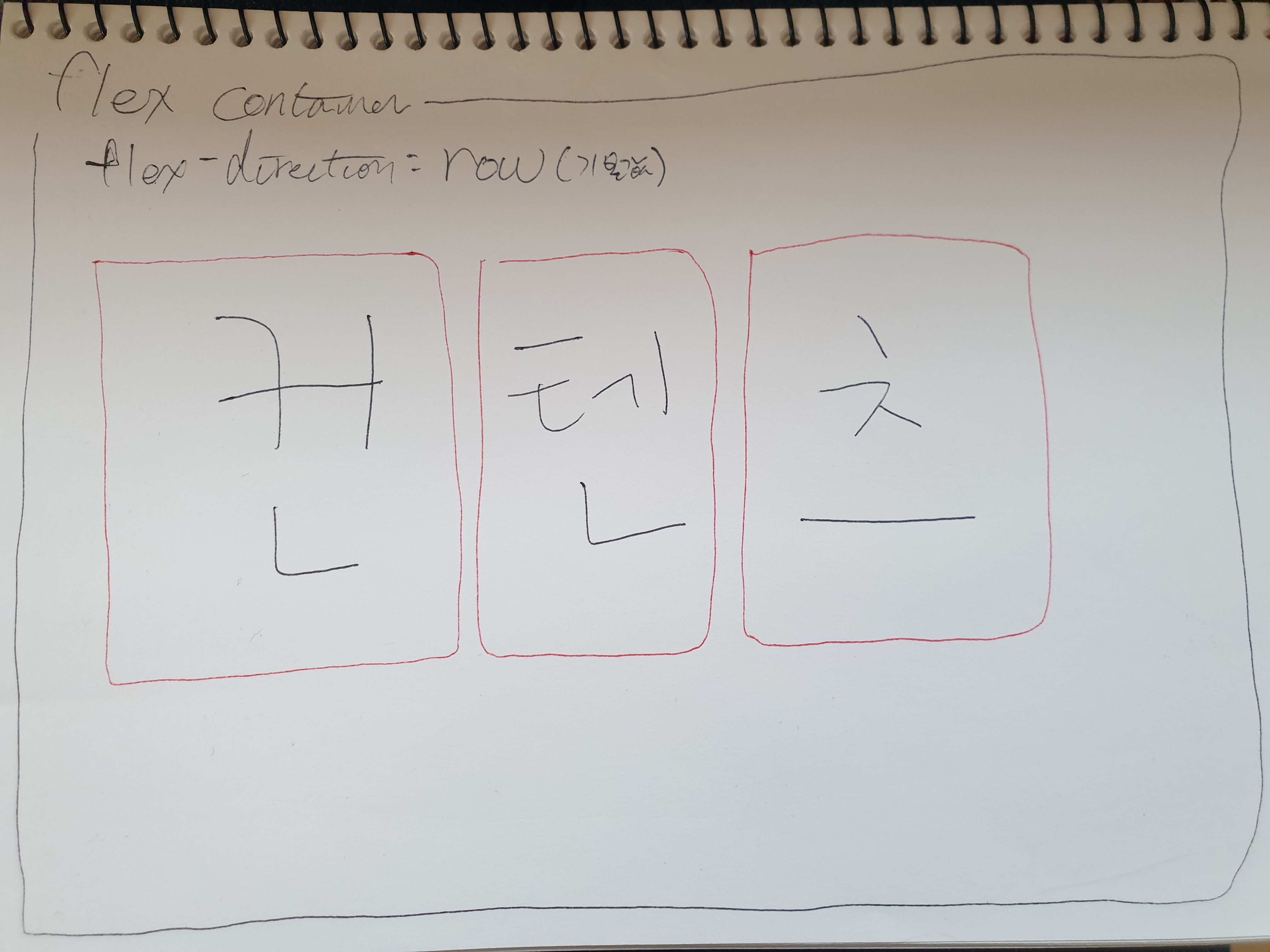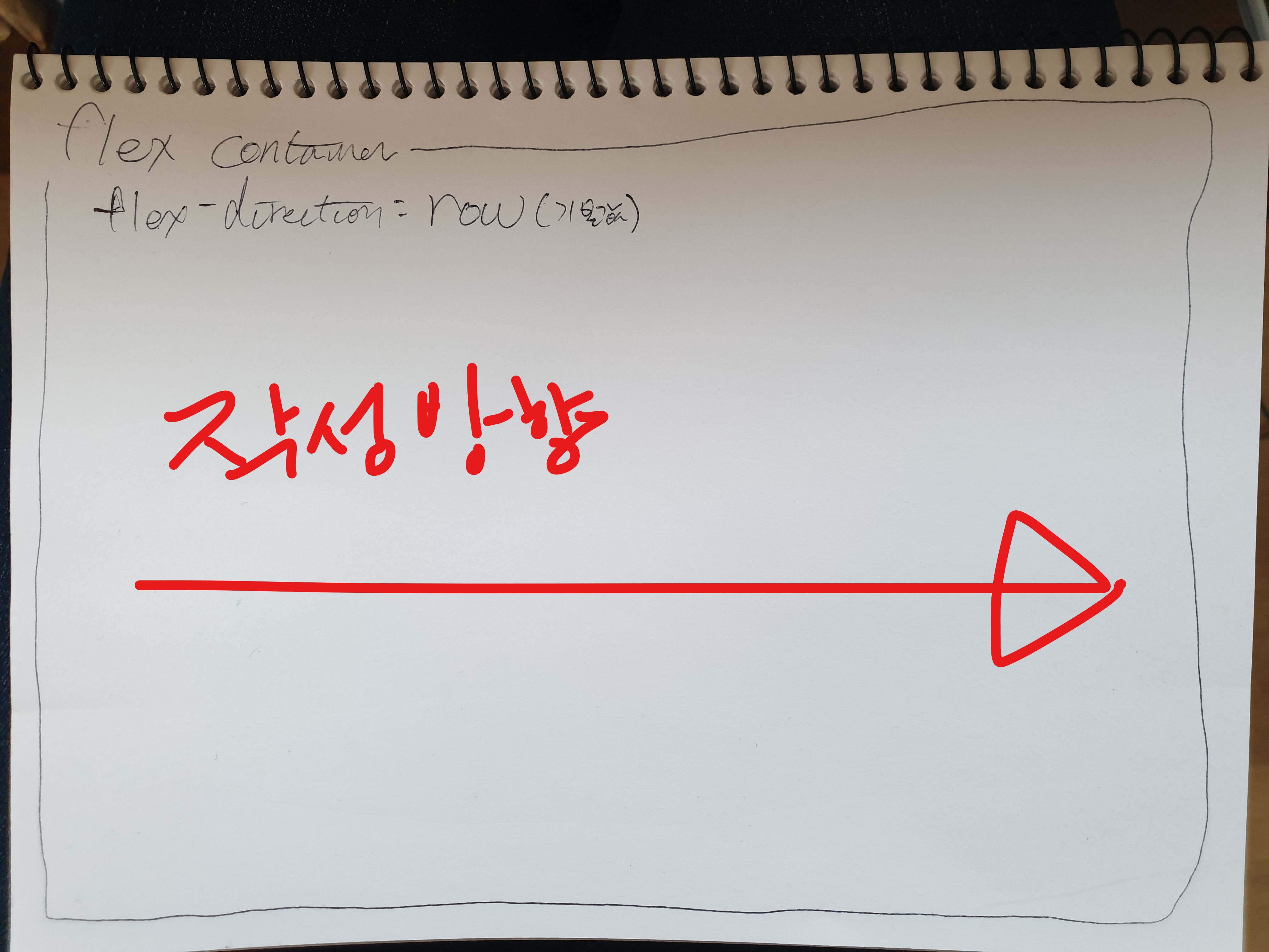 Flex 컨테이너를 노트라고 생각해보자. 방향(flex-direction)의 기본값이 가로(row)니까 공책을 가로로 놓으면 된다.이 공책에다가, 무슨 내용이 됐든 딱 한 줄만 쓴다고 가정해보자.